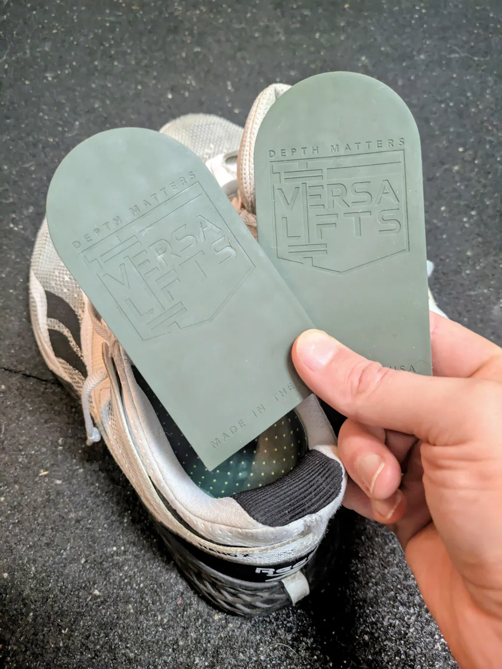 The VersaLifts® HYBRID add versatility to any training shoe. Simply insert VersaLifts to gain an additional 1/2” heel to toe drop.